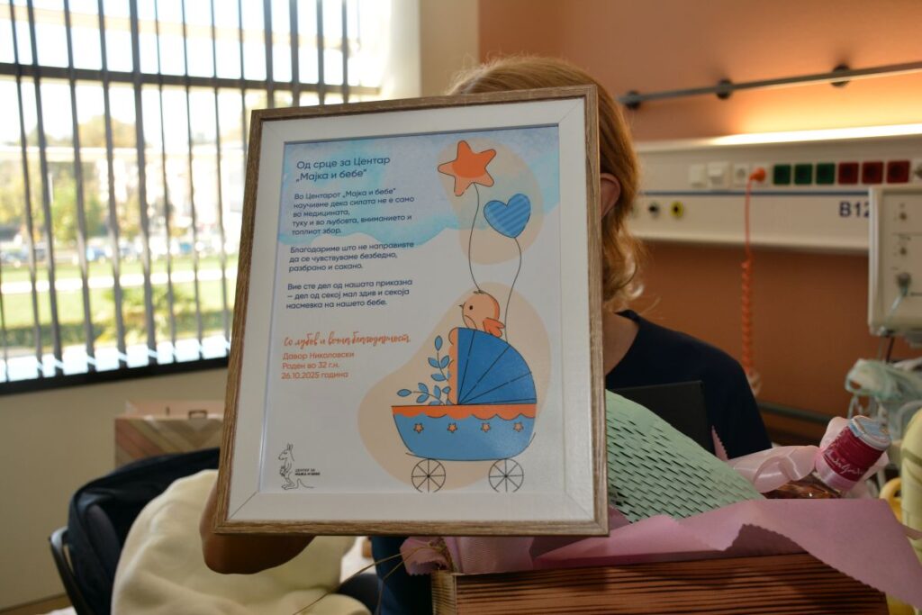 Малиот Давор роден 9 недели пред терминот, успешно ги надмина сите пречки и по 3 недели во интензивната нега на центарот за мајка и бебе, под будно око на тимот лекари и сестри, ја напушти болницата. Во целиот процес од првиот ден на раѓањето неговата мама беше тука за него држејќи го во прегратка. Тој сега заедно со своите родители и постарото братче ќе се радува и расте безгрижно.